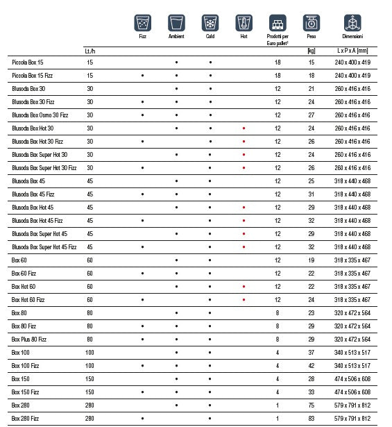 Tutta la compattezza e le prestazioni eccellenti di BluSoda sono disponibili anche nella versione sottobanco, integrandosi discretamente e funzionalmente all'interno dei mobili cucina e negli spazi break in ufficio. Questa soluzione intelligente e salvaspazio lascia in vista solo il punto di erogazione, offrendo la libertà di scegliere il rubinetto più adatto all'ambiente. Grazie alla tecnologia di osmosi inversa con membrana osmotica Blutron RO, il refrigeratore garantisce acqua sempre pura senza necessità di serbatoi intermedi.È in grado di erogare fino a 30 litri all'ora.